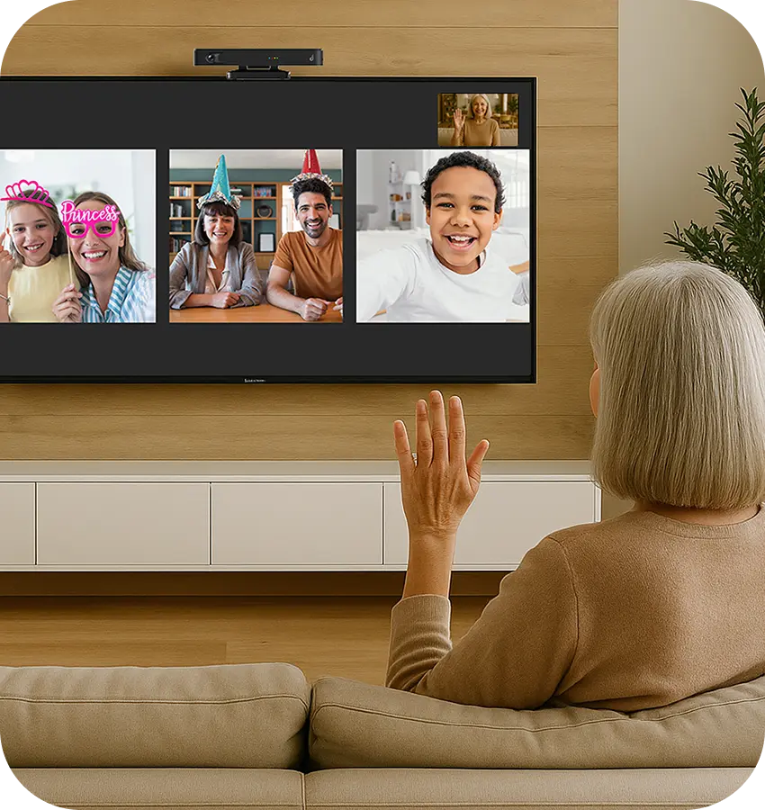 Keep the connection strong with full-room view video calls that feel more like togetherness than technology.